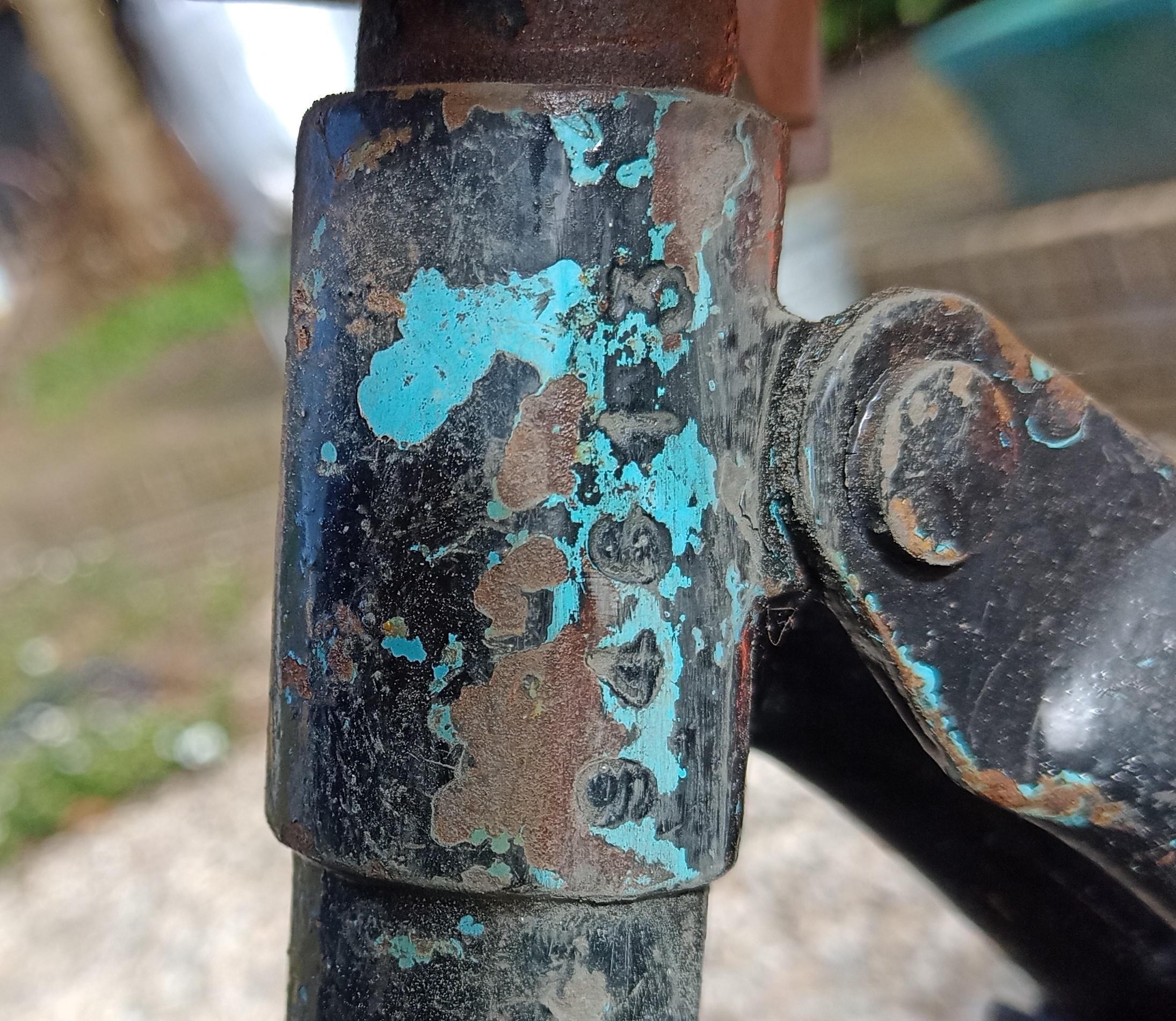 Op de zadelbuis bovenaan moet een framenummer staan. Waarschijnlijk is er verf ingelopen bij oververven. Met de uitgave CYRUS en VALUAS, themanummer Oude Fiets blz. 138 kun je MISSCHIEN ongeveer het bouwjaar bepalen. Met acht oude Cyrussen in mijn bezit, weet ik inmiddels dat de fabriek zich niet altijd aan de volgorde bij framenummers aanbrengen heeft gehouden. Succes!