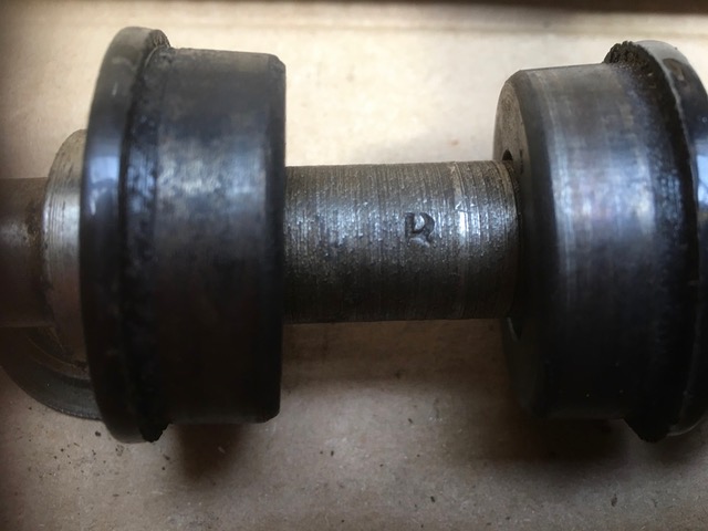 Op de as staat wel iets ingeslagen. het lijkt een mislukte B of R. Op het linker afdekkapje dat in de inslagcup geschroefd wordt staat een L.