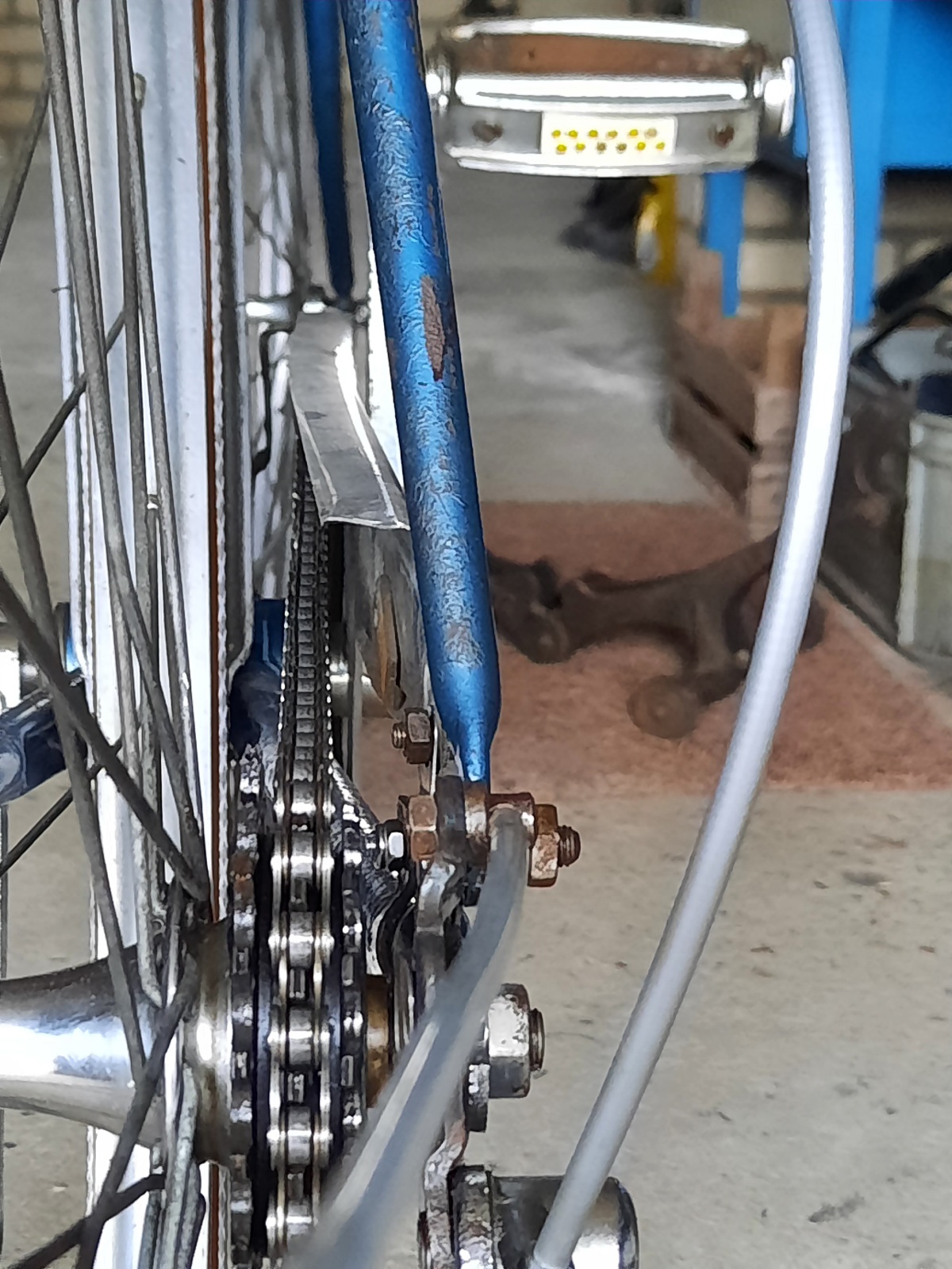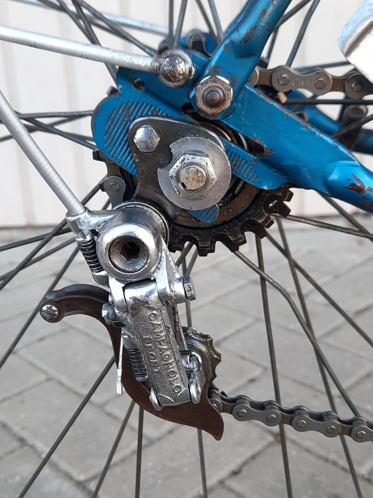 Wat kan meespelen is dat je een nieuwe (moderne) KMC ketting gebruikt heb op de oude pion. Vaak is het kleinste tandwiel het gevoeligst voor problemen als je dan een nieuwe ketting gebruikt. Daarmee bedoel ik overslaan of knarsen/brommen.