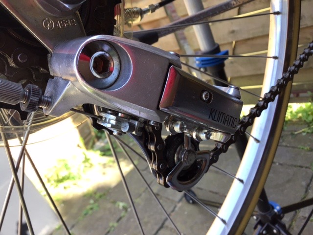 En jou Klimatic lijkt me ook geen doorsnee derailleur te zijn. Maar te strak is nooit goed, kwestie van beetje aanvoelen, als je op grootste legt achter mag hij liefst niet gans naar voren getrokken worden.