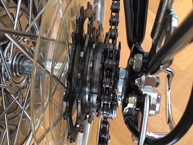 Ik heb het bijna voor elkaar. Was een kwestie van kettingspanning. De derailleur schakelt alle versnellingen blijft echter ratelen en overslaan op het een na kleinste tandwiel. Is mijn ketting te breed?
