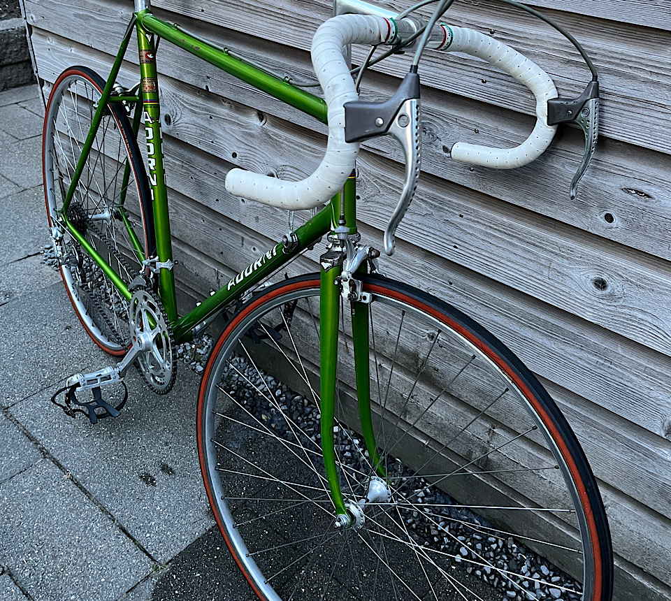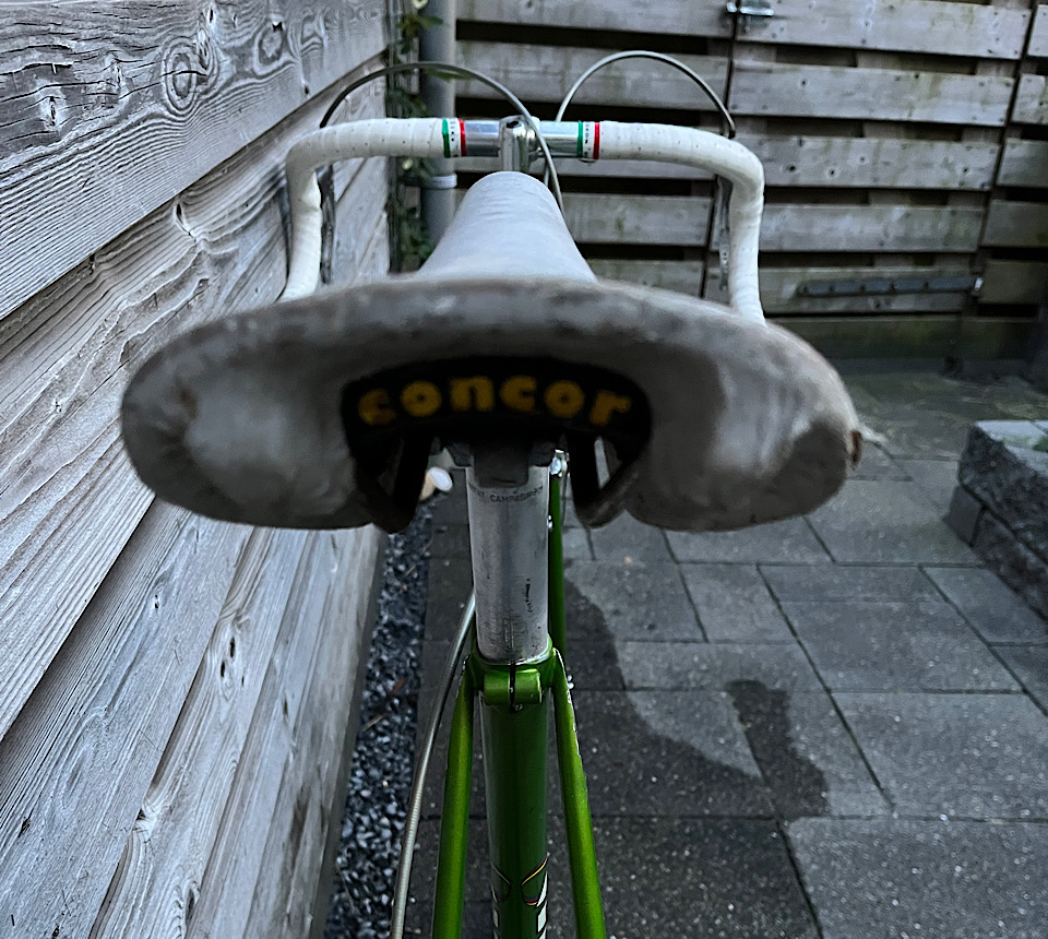 Ik vind het wel een heel fraaie fiets. Mooie details en een fantastische kleur. Een paar nieuwe remgreeprubbers en een poetsbeurt, en hij is helemaal af.