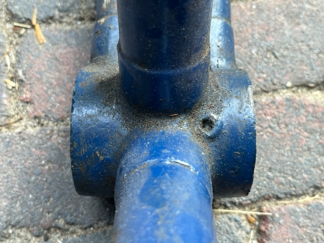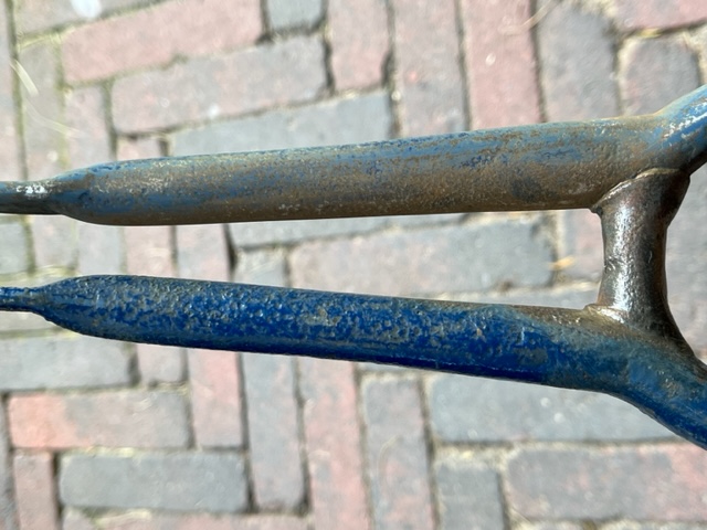 Lijkt mij typisch het gevolg van wat er aan lugs beschikbaar was. Boven gewoon standaard, onderlug uit een transportfiets serie en toen moest die buis dus een maat groter