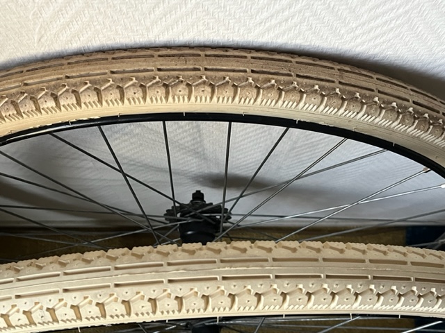 De velgen van 39mm breed zijn NOS maar toen die van het voorwiel gespaakt was klapte de velg open toen er druk op de band kwam. Dat was een beetje heel erg vreemd. Had ik nog niet eerder mee gemaakt.