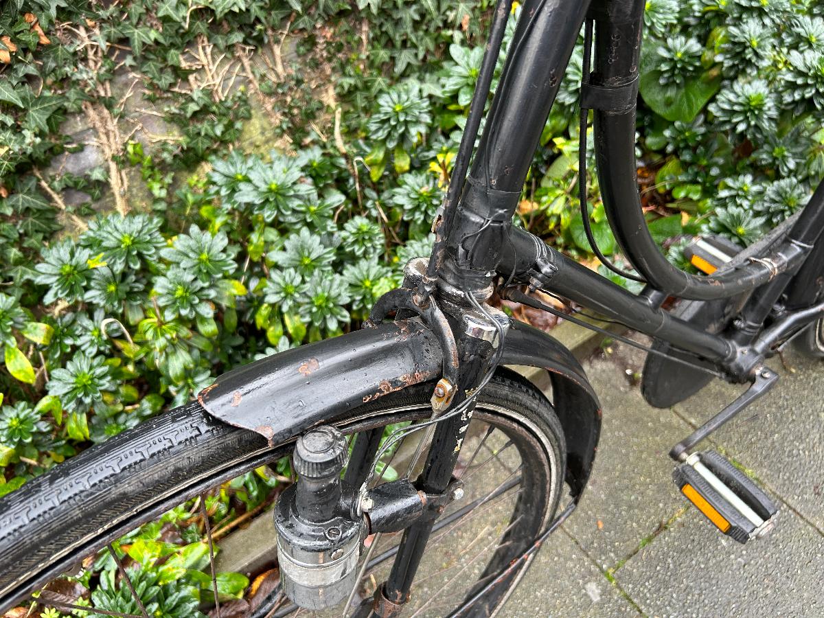 Dankzij jullie hulp gedateerd*, een Fongers D60 1934, Uitvoering #10. Na afstellen en nieuwe biba's heb ik er deze zomer op gefietst maar helaas heb ik te weinig tijd en te veel andere fietsen om deze verder genoeg aandacht te geven. Daarom mag hij t.e.a.b. (minimumbod een fles wijn) naar een andere liefhebber: berijden, opknappen, of als donor gebruiken. Fietst, remt, schakelt goed. Zadel, lak, wellicht achtertrommel/versnelling niet meer origineel. Regio Utrecht. Ik zet hem ook even op MP** voor het grotere publiek daar. DM bij interesse hier of op MP.