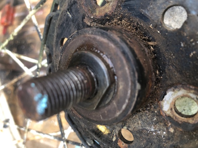Ik heb een achterwiel van een Apollo bakfiets waarvan de as helemaal vastzit. Nu wil ik de as met lager demonteren om het probleem te fiksen.