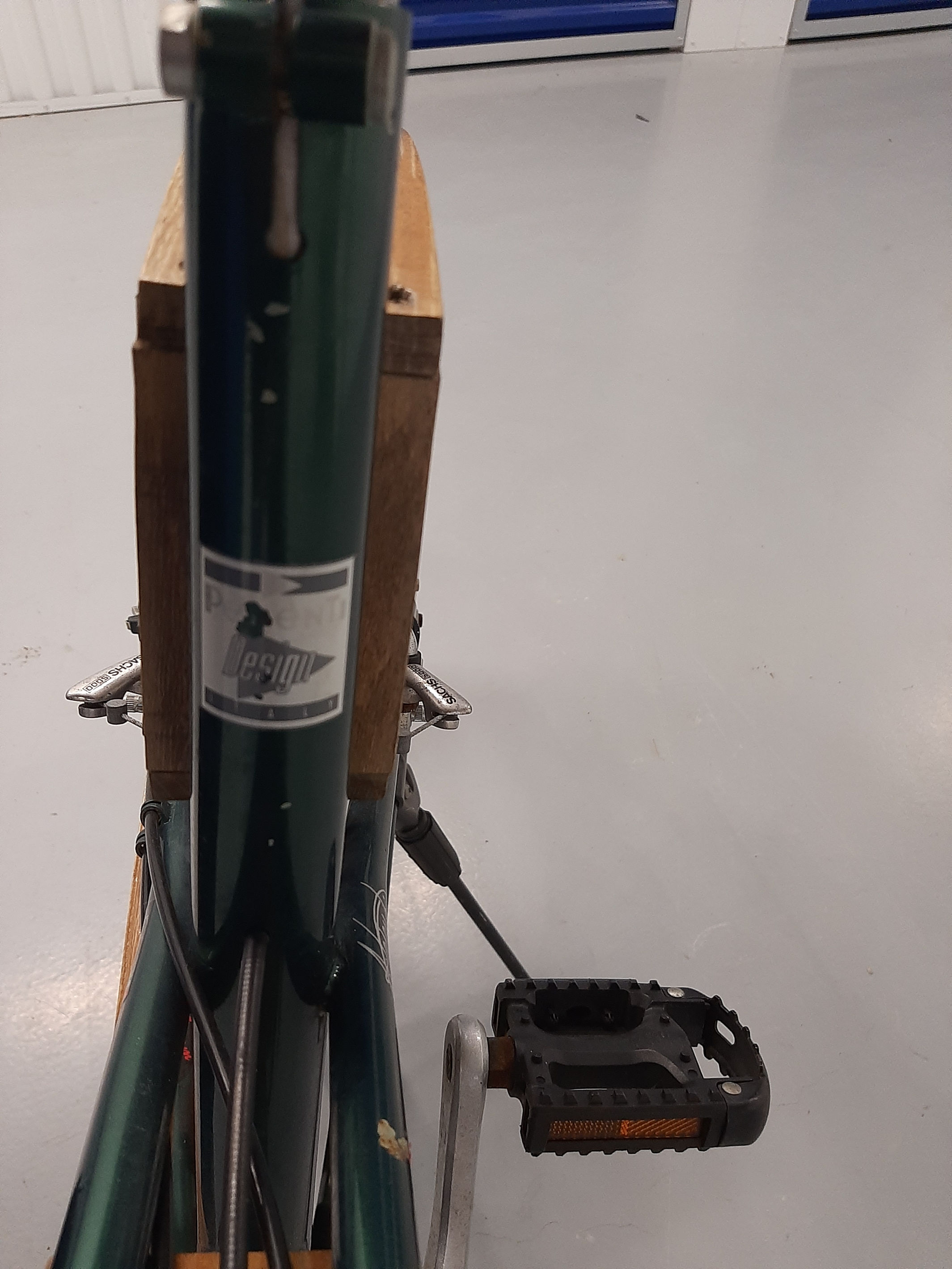 a-la-meubelmaker afgewerkt ? ; het lijkt meer een werkstukje van een eerstejaars LTSer; niets sluit mooi aan of is netjes afgewerkt en dan die plastic pedalen op de koop toe ; deze is meer voor tussen kunst en kitsch