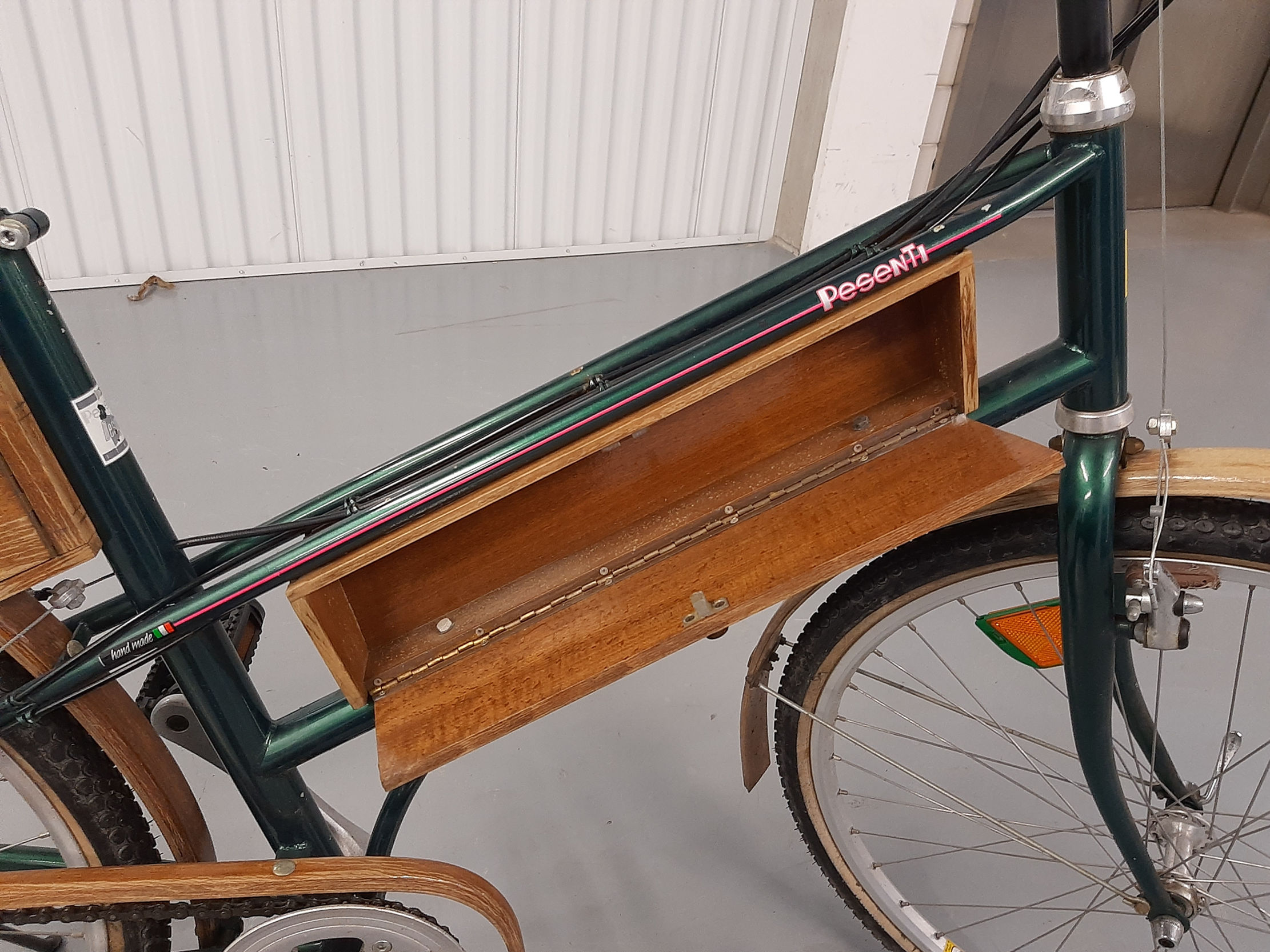 Bijzonder is dat de fiets een zg stadsfiets is, geen wedstrijdfiets. (Ik heb verder nergens gezien dat Pesenti iets anders dan wedstrijdfietsen bouwde). De maat lijkt op de Sparta 8/80, nl makkelijk aan te passen door het stuur en zadel te verstellen, (1 maat voor alle leeftijden). Schakelgroep is van Sachs. In de naaf 3 versnellingen, met verder een pion- derailleurschakeling (6x). De versnelling is vast te zetten (knopje op de schakelhendel), zodat die niet verspringt onder het rijden. Verder is de fiets in uitstekende conditie, even de derailleur bijstellen.