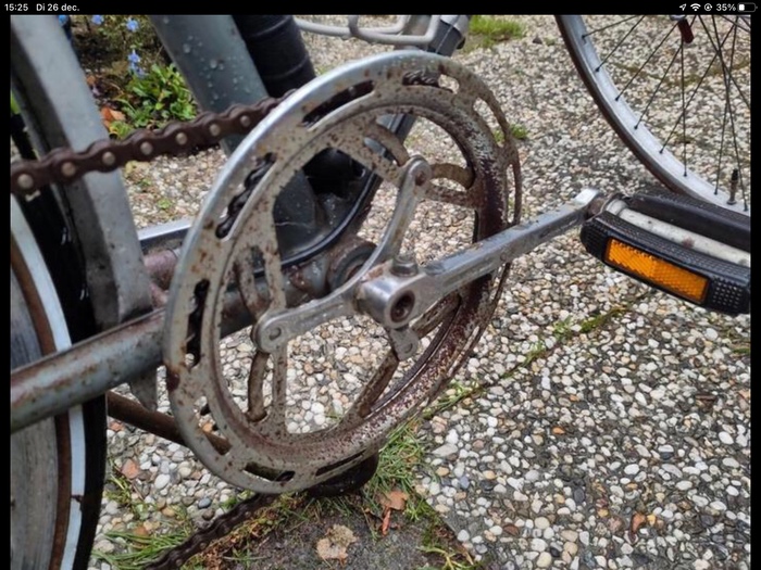 Er zit een stalen Nervar crankset op die nog redelijk weer op te poetsen is.