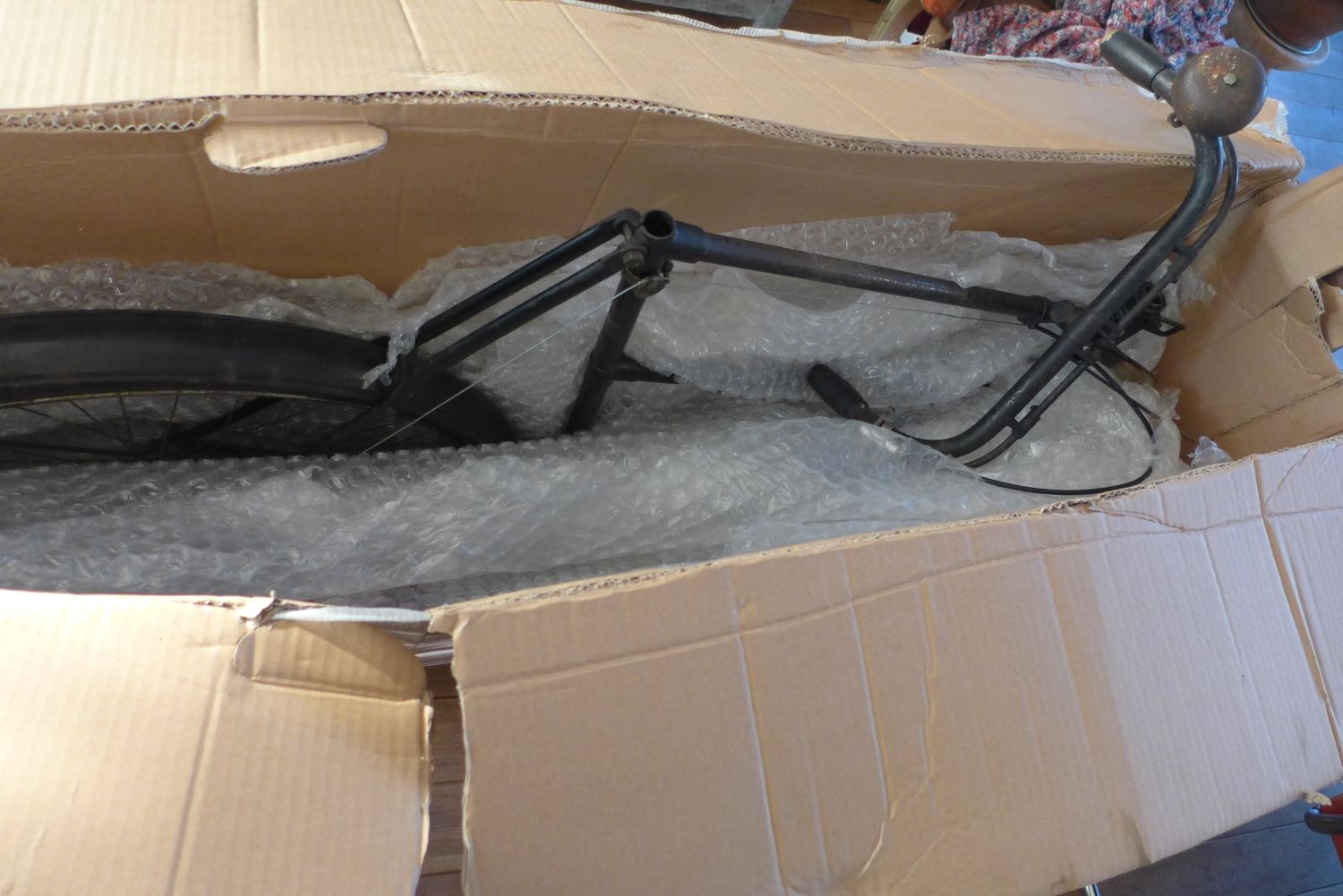 In deze Humber zit een Sturmey Archer A naaf die nog goed schakelde maar waarvan het achtertandwiel verkeerdom zat voor een juiste kettinglijn en
