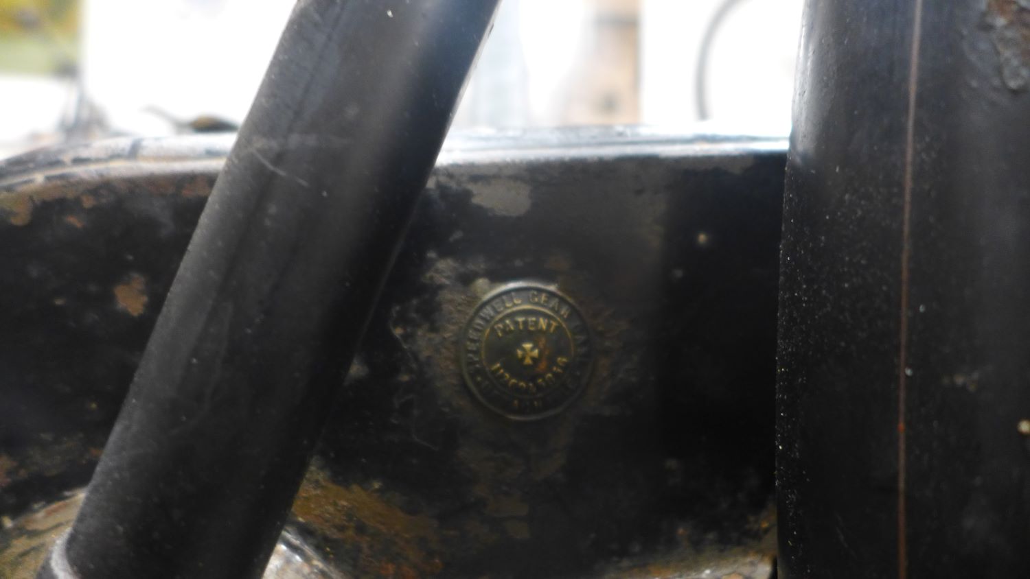 De S.A. A naaf is van 1915 al ben ik niet zeker of altijd het bij deze fiets heeft gezeten. Wel Humber omdat het tandwiel met de grovere 5/8 e vertanding aan de achterkant vuil en vet van vele jaren had. Niet iets dat de afgelopen jaren is aangepast om in de fiets te passen.