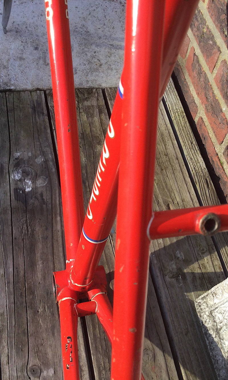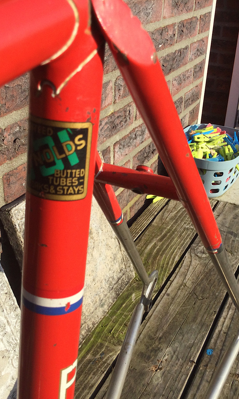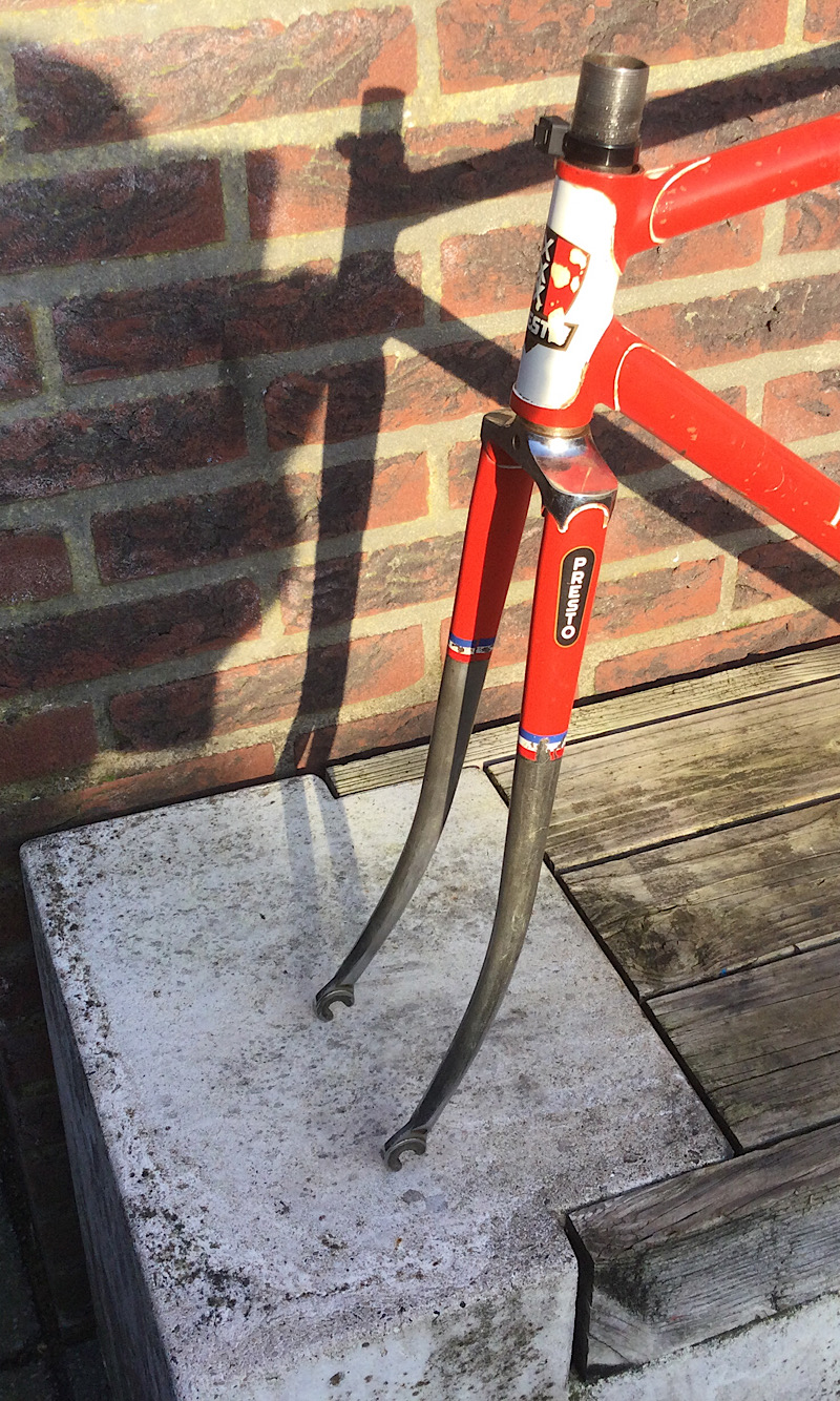 Campagnolo pads , licht Reynolds 531 frame met open bottom bracket.