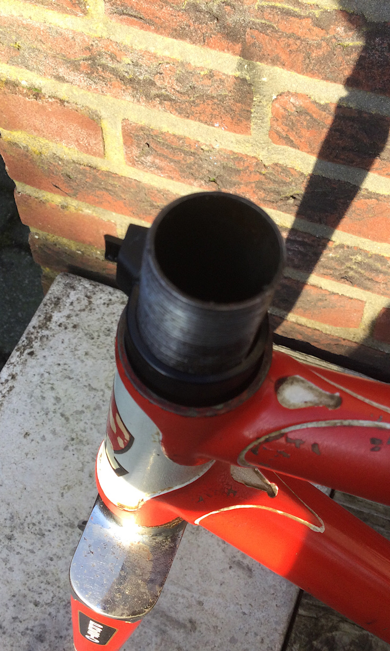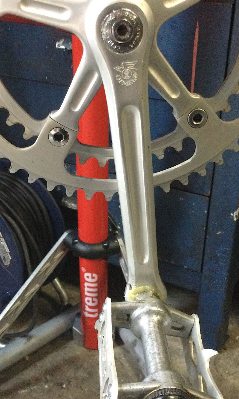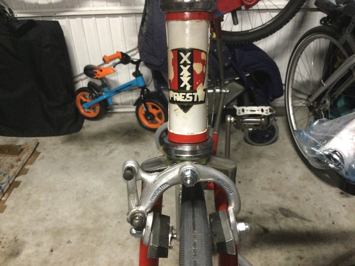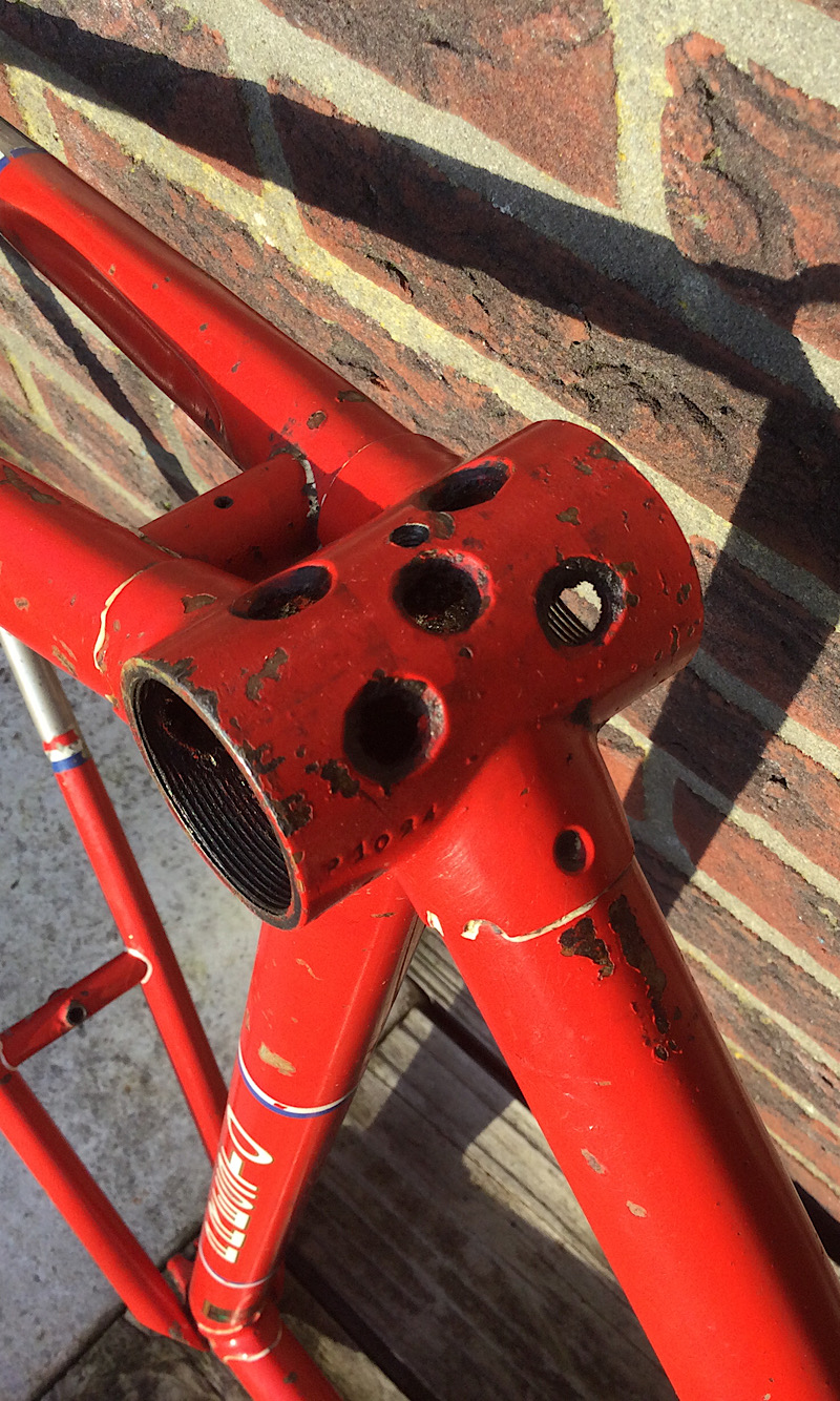 Campagnolo pads , licht Reynolds 531 frame met open bottom bracket.
