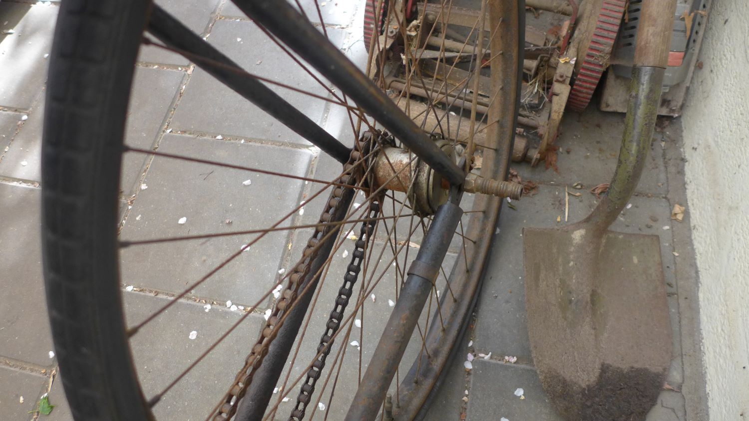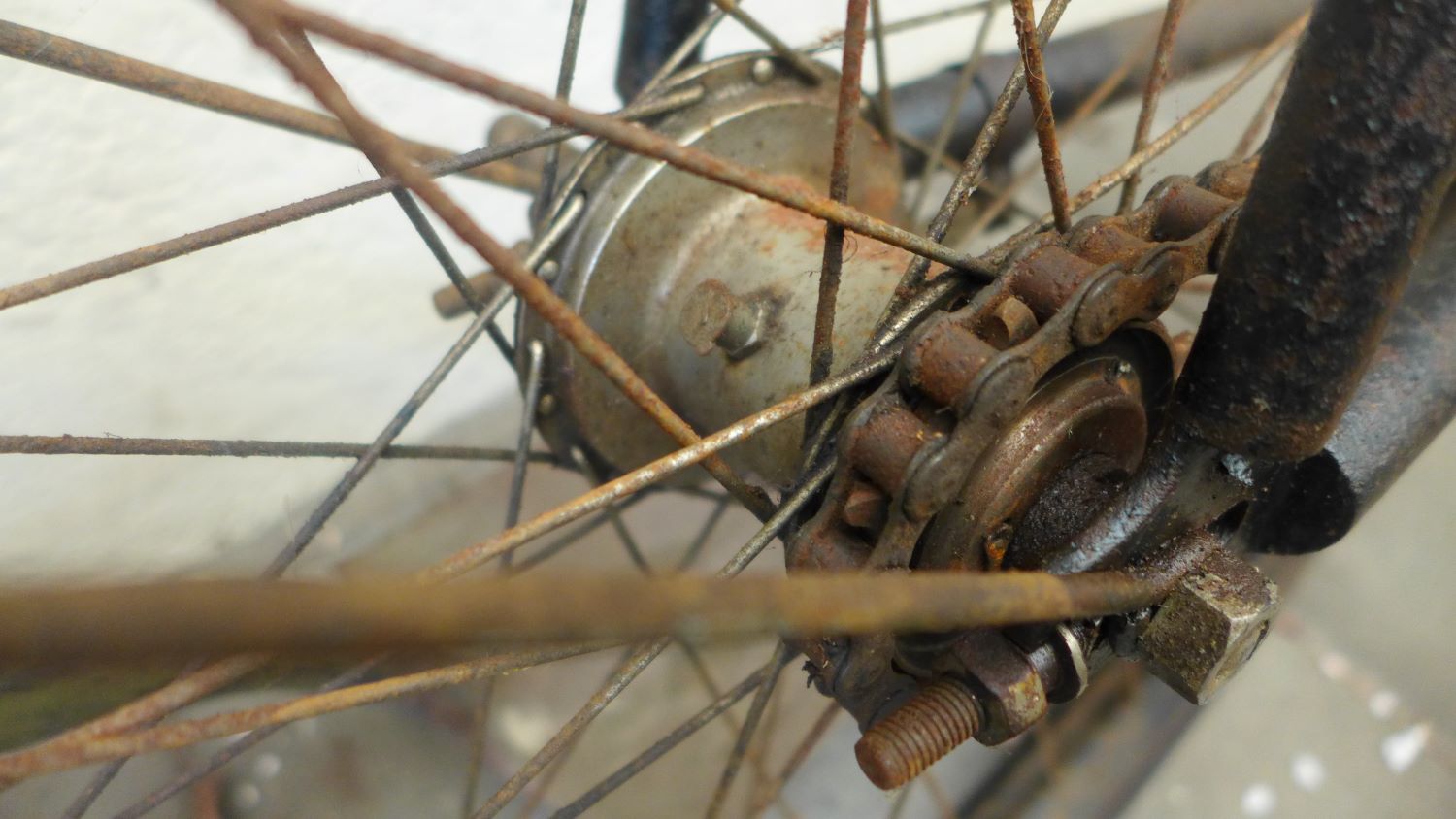 En inderdaad een behoorlijk gebruikte fiets. De trapas is ook zwaar versleten.