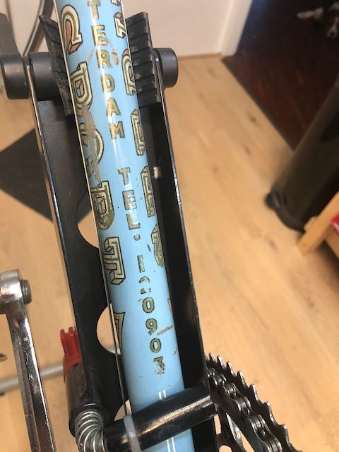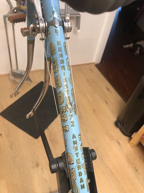 - apart vind ik het complete adres en telefoonnummer van de maker (A.C. Stephan) op het frame. Voor wielrenners met geheugenverlies?
